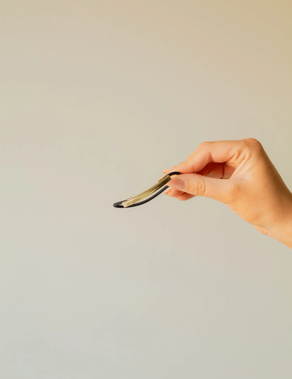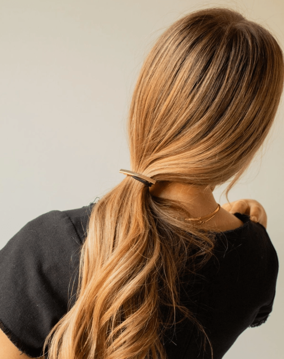 Cet élastique à cheveux sera le complément idéal de votre garde-robe! Composé d'un élastique noir et d'une fine barre dorée, il maintiendra vos cheveux fermement et leur apportera une touche adorable tout en restant simple.