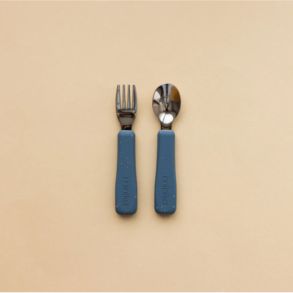 Ensemble de fourchette et cuillère avec poignée en silicone.