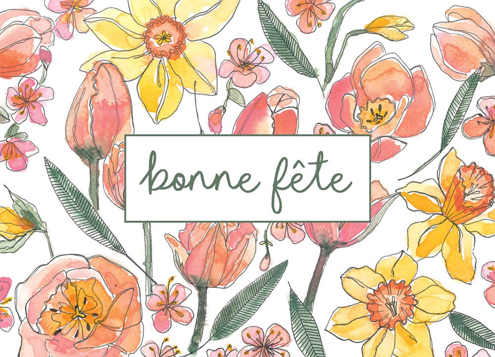 Carte de souhait dessinée et imprimée au Québec! Un papier effet lin de superbe qualité.