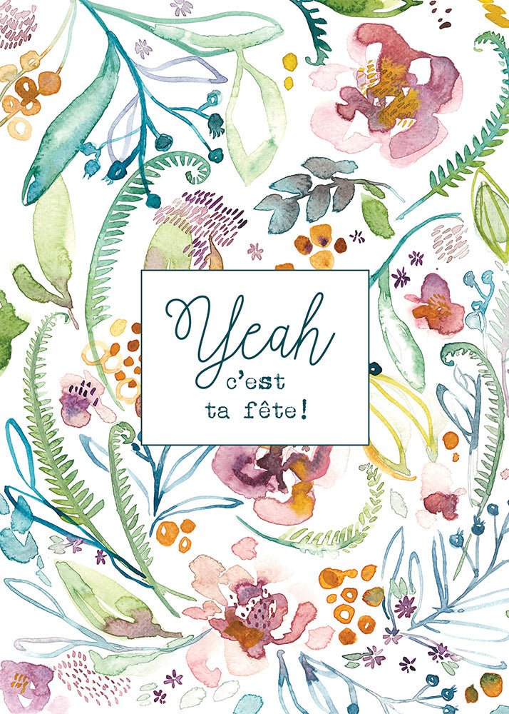 Carte de souhait dessinée et imprimée au Québec! Un papier effet lin de superbe qualité.
