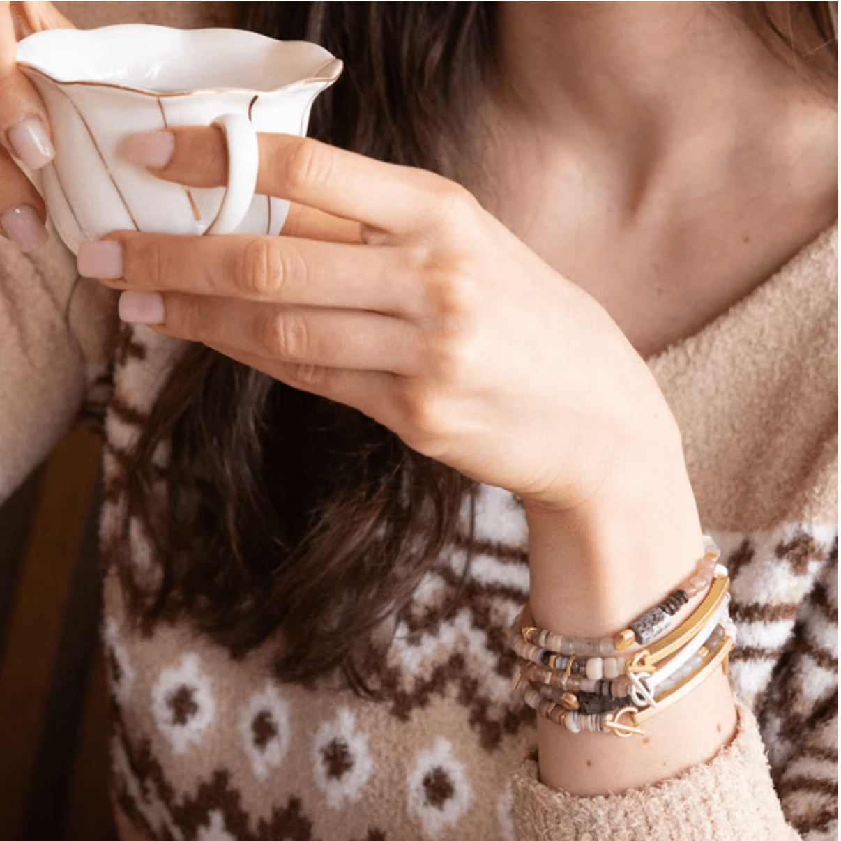 Conçus avec soin à partir de pierres semi-précieuses énergisantes, rehaussés de perles et de métaux plaqués or et argent, chaque bracelet porte en lui une signification profonde.