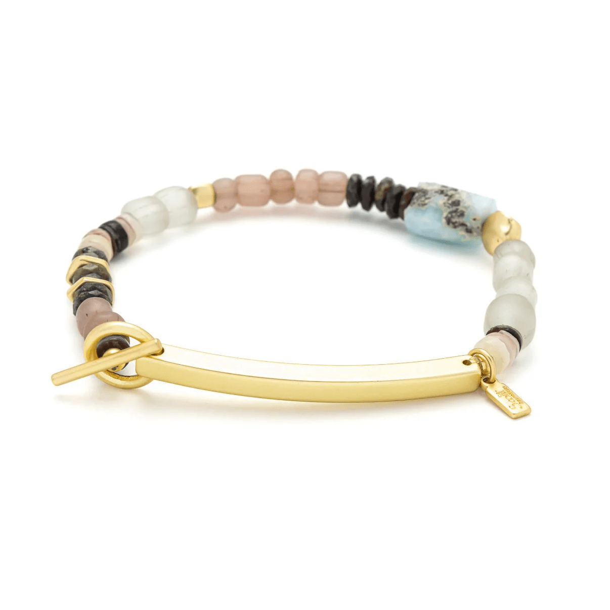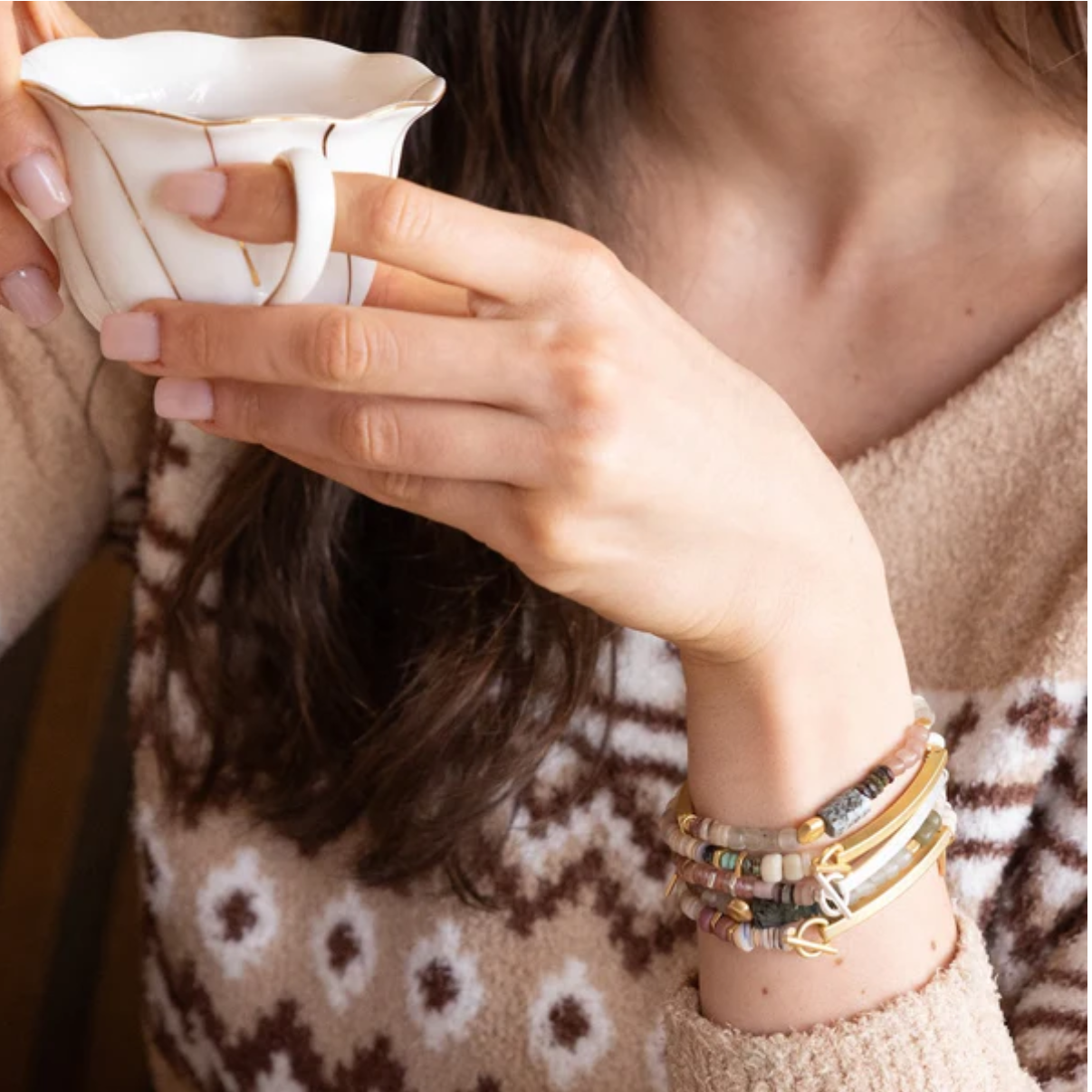 Conçus avec soin à partir de pierres semi-précieuses énergisantes, rehaussés de perles et de métaux plaqués or et argent, chaque bracelet porte en lui une signification profonde.