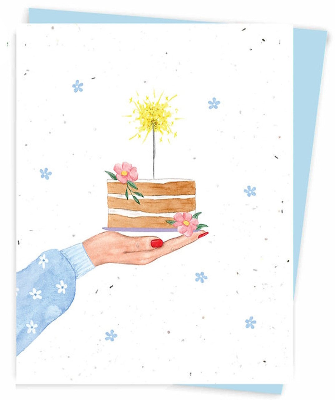 Carte de souhaits vierge impression sur papier ensemencé d'un magnifique mélange de 6 fleurs sauvages canadiennes à planter (Silène, Alysson maritime, Muflier, Gilia tricolore, Rudbeckia et Clarkia)