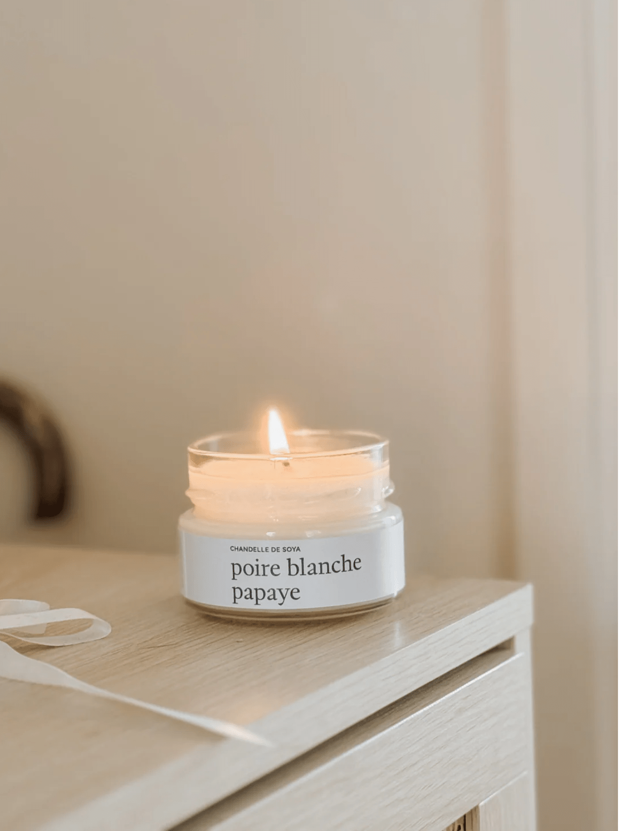 Découvrez la chandelle de soya Poire blanche papaye, une fusion enivrante entre la douceur de la poire blanche et l'exotisme juteux de la papaye.