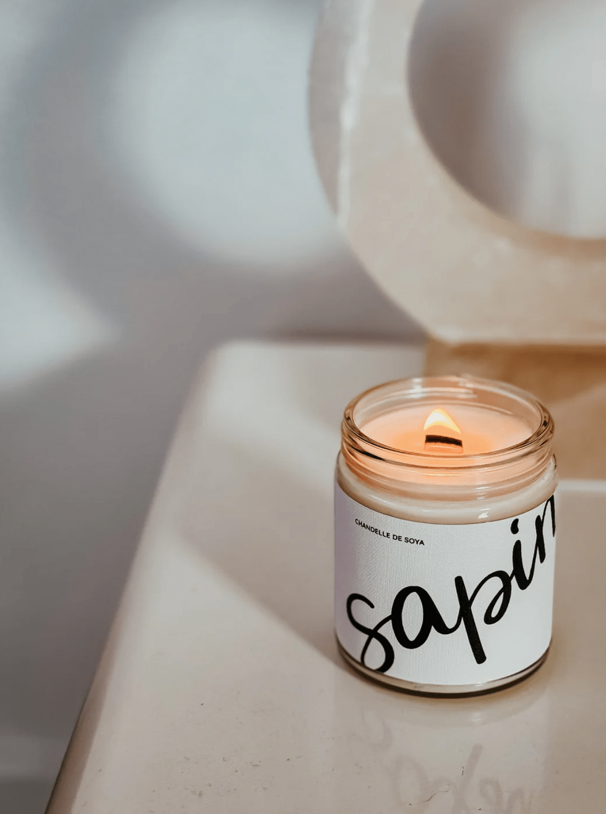 En choisissant la mèche de bois, si vous portez attention, vous pourrez entendre tout doucement votre chandelle crépiter. L'étiquette de cette bougie est imprimée sur un papier texturé.