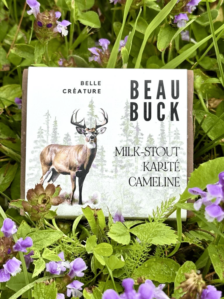 Ce savon artisanal, profondément enraciné dans le terroir, est élaboré à partir de Milk Stout de la microbrasserie Le Roquemont, dont les sucres naturels, les protéines et les minéraux enrichissent la mousse et la douceur de ce soin unique. Sa mousse généreuse, légèrement boisée et résineuse, rappelle les promenades en forêt, entre fougères humides, conifères et fleurs sauvages. Le Beau Buck, c’est le savon des amoureux de la forêt et de la bière bien faite. Une alliance surprenante de richesse végétale et de tradition québécoise, pour les peaux qui méritent respect, force et douceur.