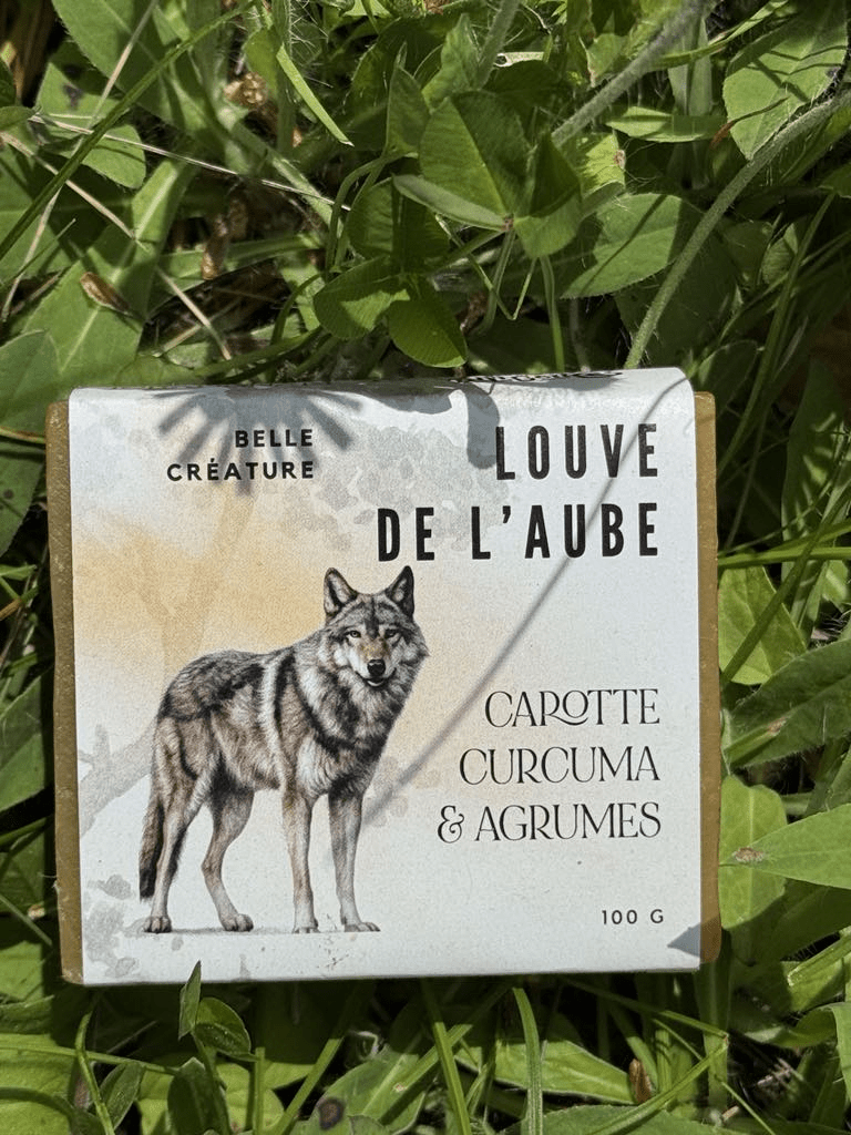 La Louve de l’Aube, c’est un savon vibrant et sensoriel, infusé de carotte, curcuma et huiles essentielles d’agrumes pour réveiller la peau, tonifier l’esprit et illuminer le teint. Son parfum hespéridé, doux et légèrement épicé évoque les premières lueurs du matin. La Louve de l’Aube nettoie sans dessécher. Elle offre une mousse crémeuse qui laisse la peau douce, lumineuse, subtilement parfumée… et prête à accueillir la journée.
