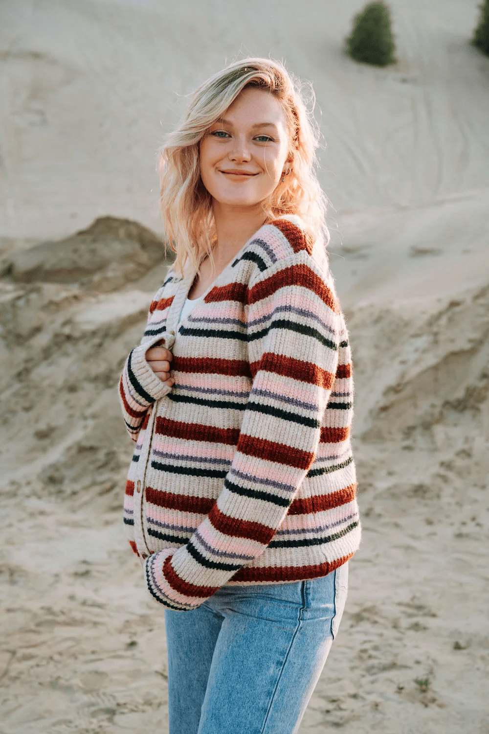 Un essentiel coloré et confortable, parfait pour ajouter une touche de gaieté à vos looks du quotidien. Avec ses rayures multicolores et sa coupe classique à boutons, ce cardigan s’adapte à vos besoins et à votre style.
