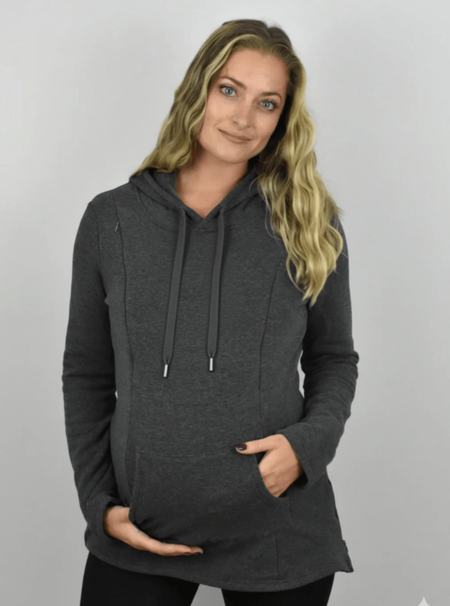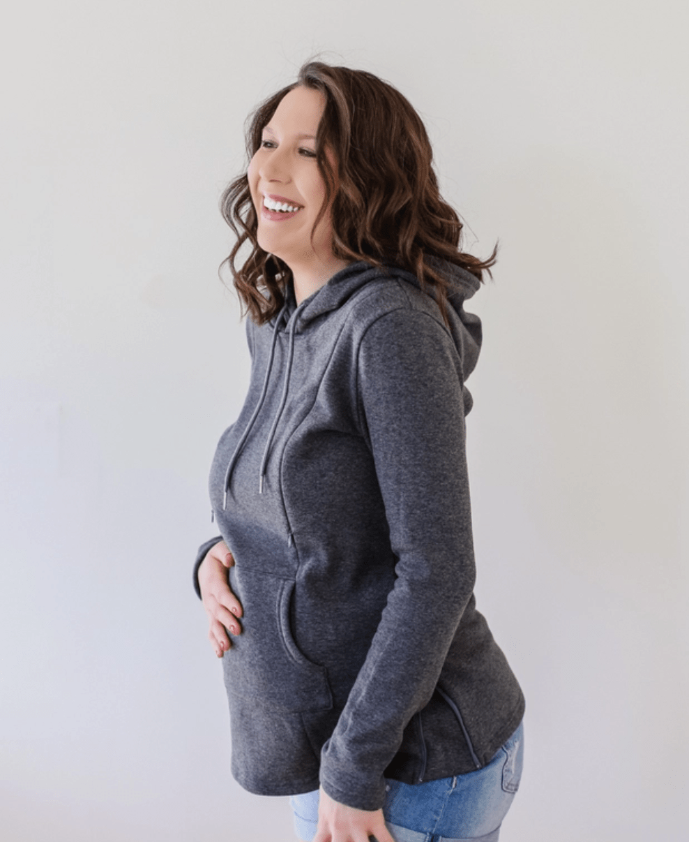 Ce haut combine le confort de votre sweat préféré avec le design réfléchi des vêtements de maternité et d'allaitement canadiens. Les panneaux latéraux à fermeture éclair s'ouvrent pour faire de la place à votre ventre qui s'arrondit et les fermetures éclair cachées pour l'allaitement permettent un allaitement rapide et discret où que la vie vous mène.