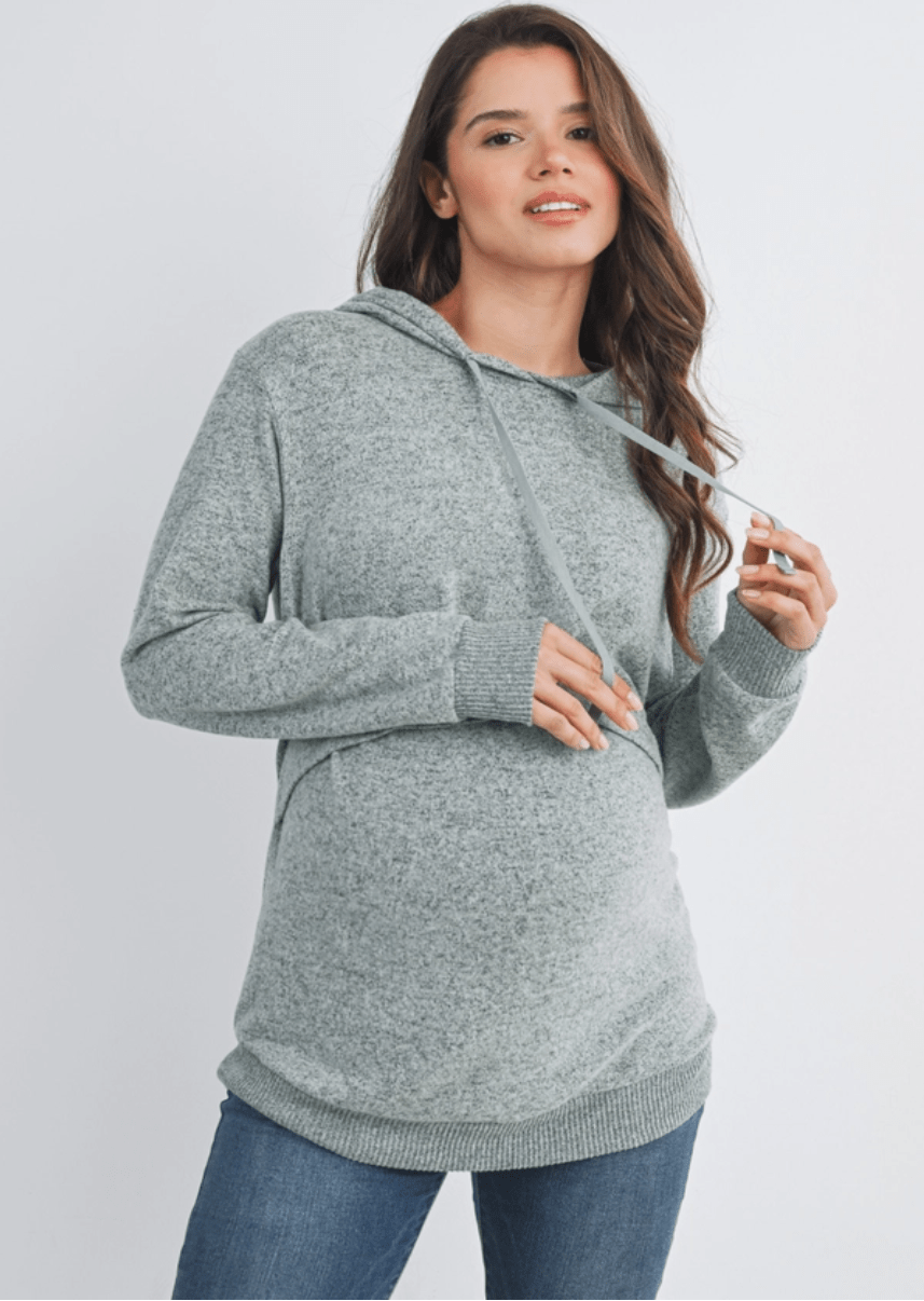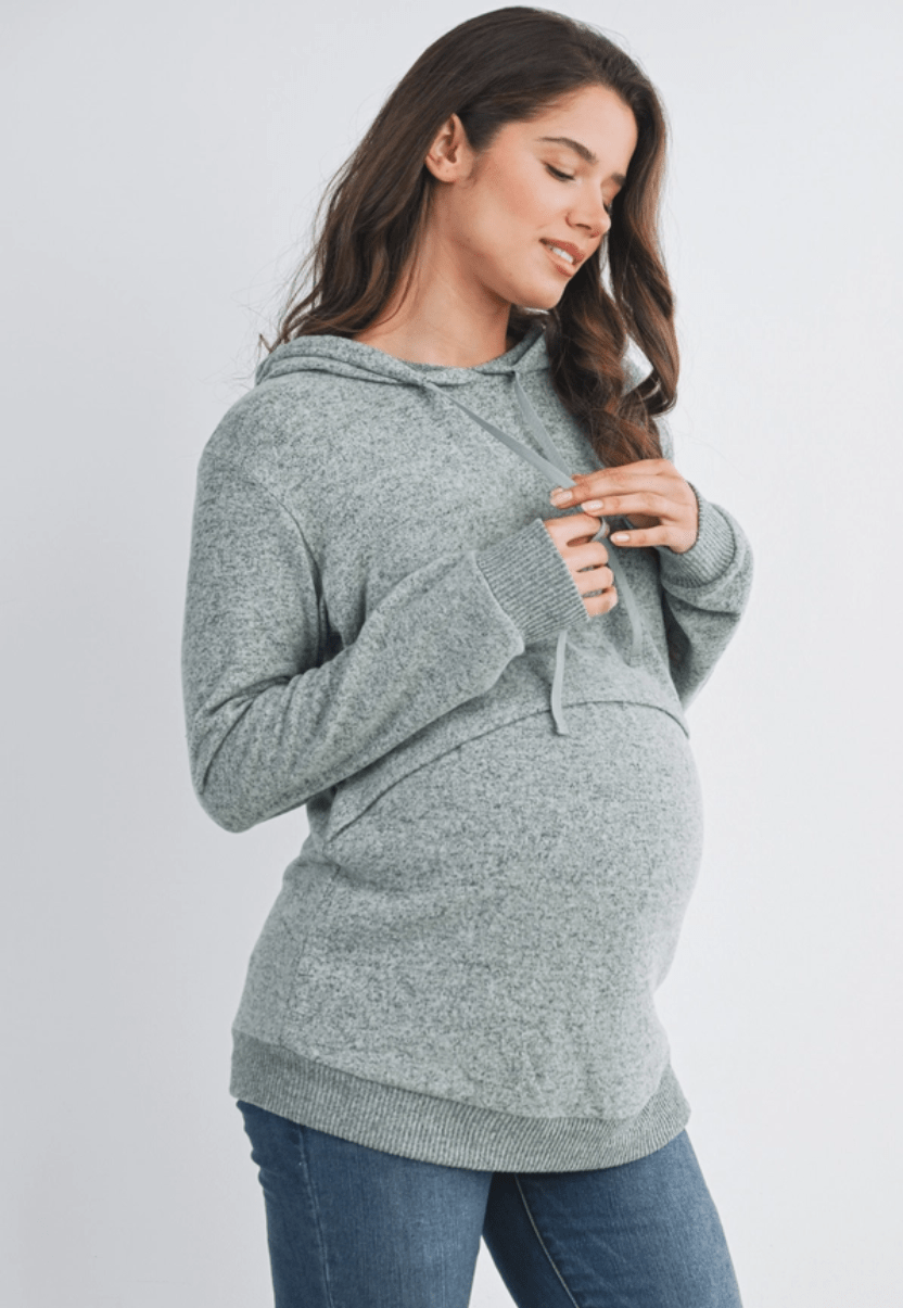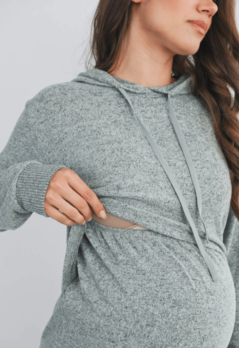 Haut à manches longues et capuchon pour la maternité et l'allaitement.