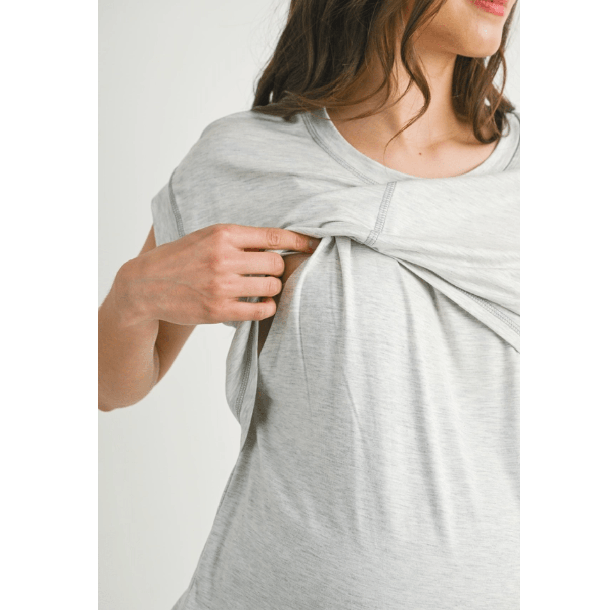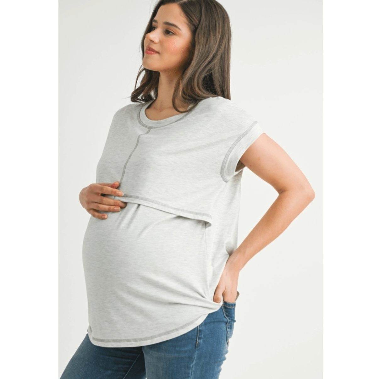 Haut léger à manches courtes et col rond. Parfait pour la grossesse et ensuite pour l'allaitement.