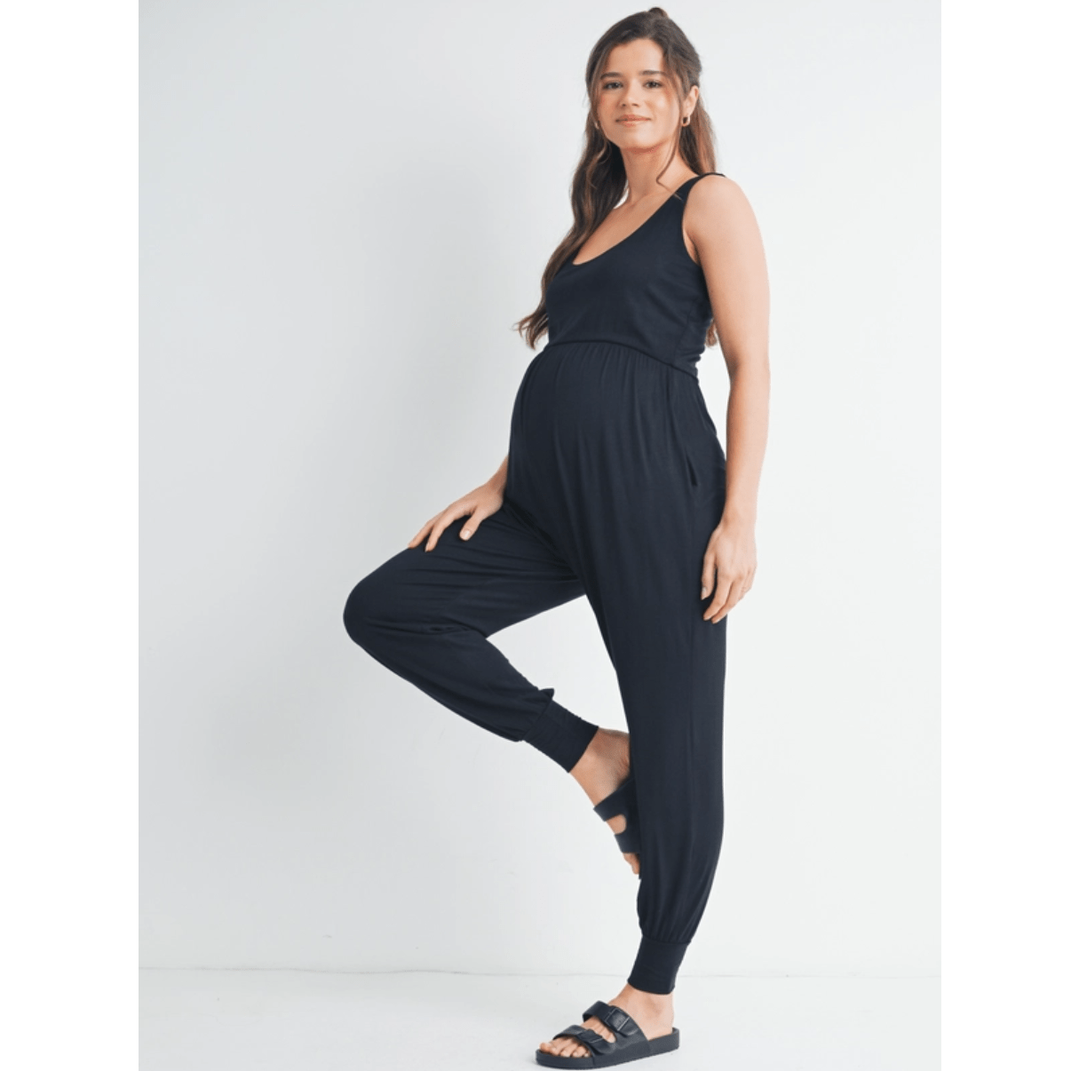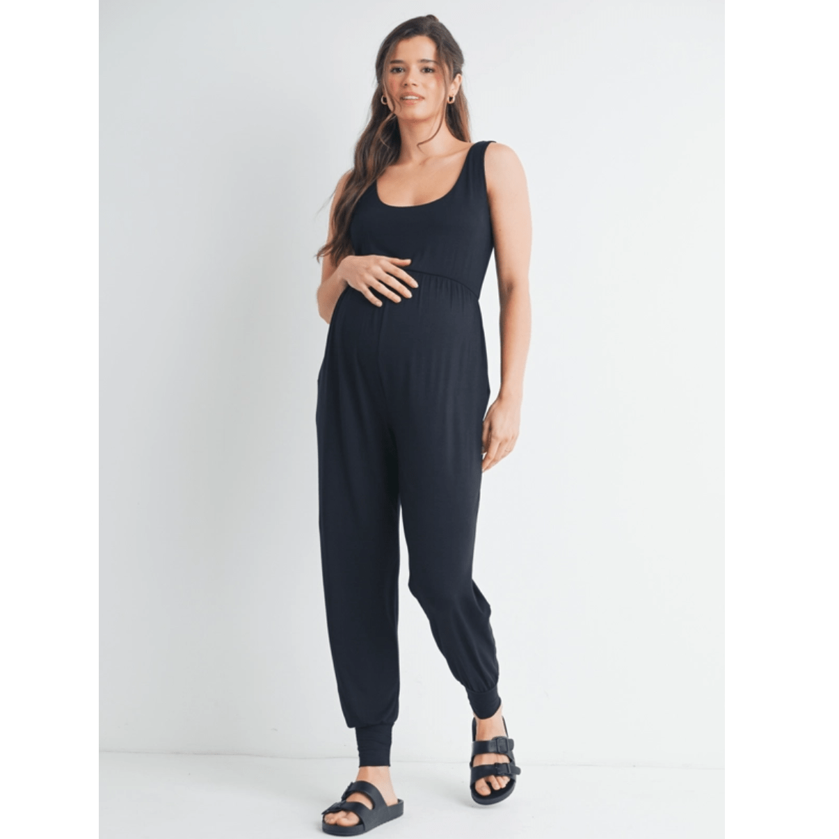 Combi de maternité sans manches à encolure dégagée et poches latérales