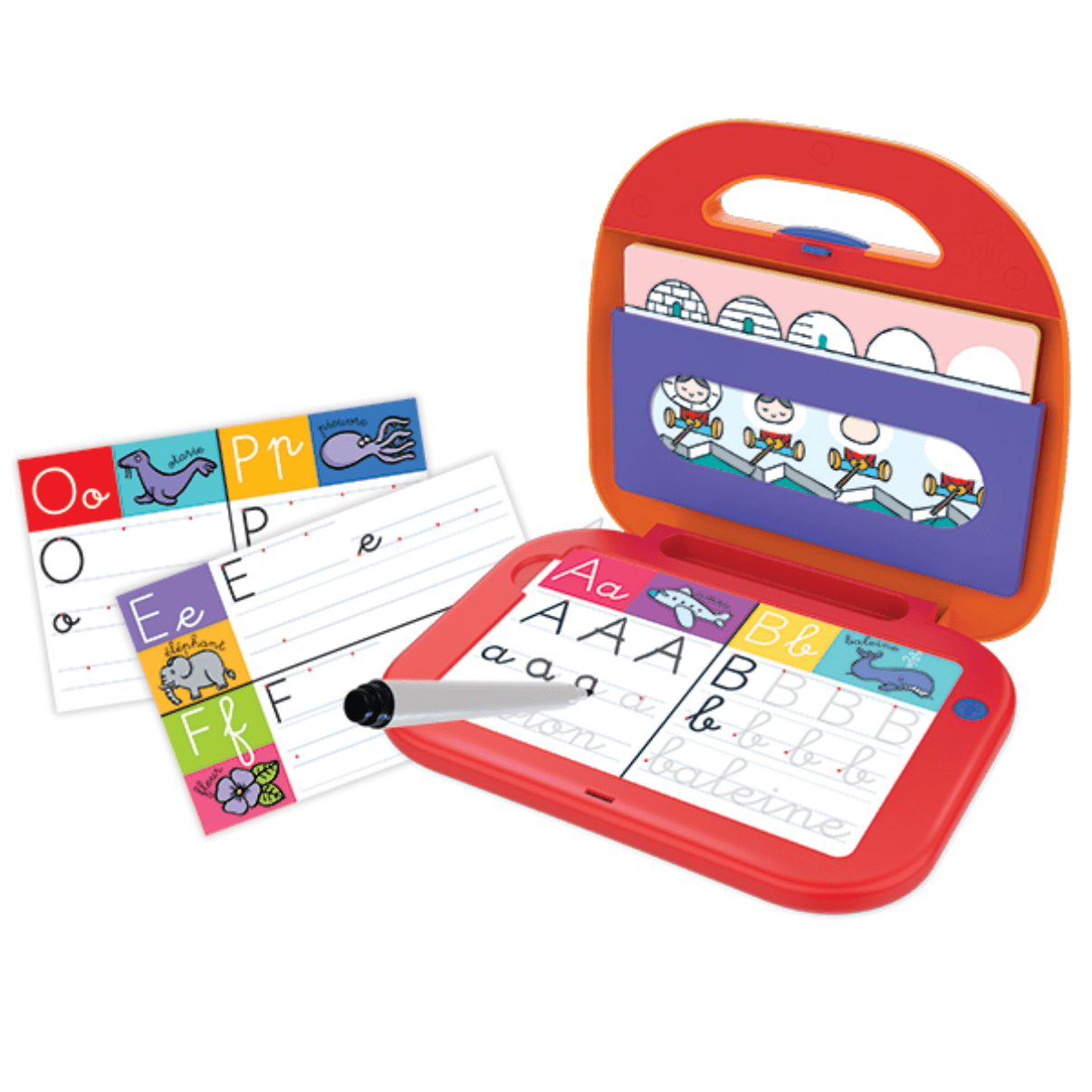 Les 20 planches effaçables et le pupitre lumineux lui donnent le modèle pour écrire ses premiers mots et permettent une autocorrection.