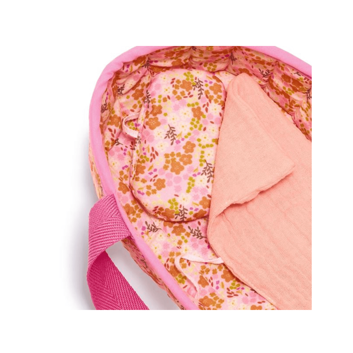 Elle a un corps souple et doux imprimé comme un pyjama. Niché dans son adorable petit couffin matelassé au motif élégant, elle deviendra vite le compagnon idéal des petits pour être câlinée et chérie partout où ils décideront de l’emporter.