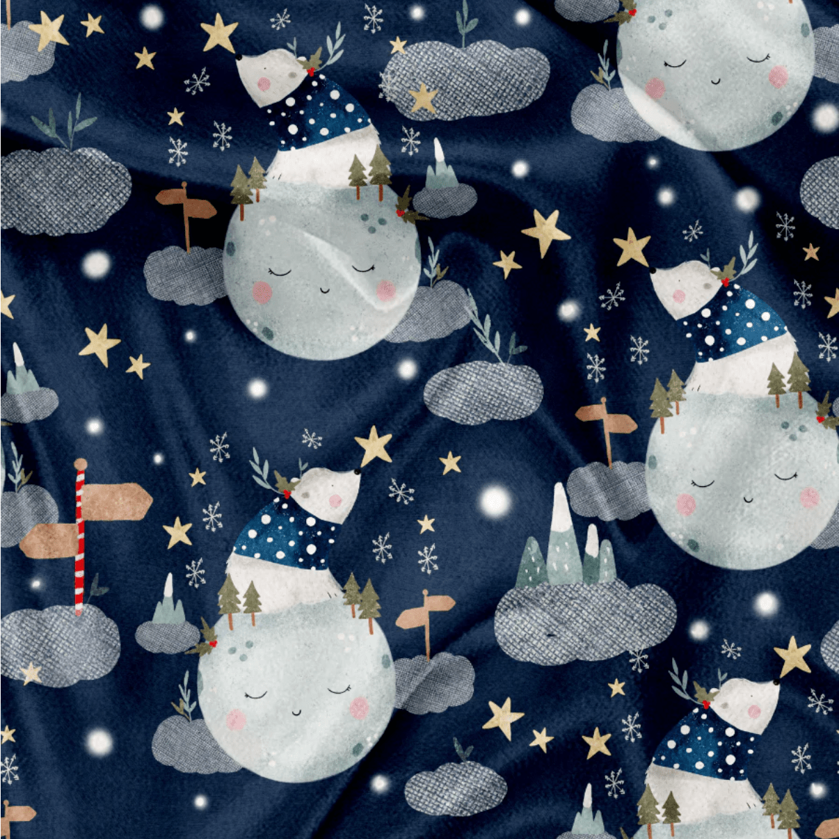 Couverture fabriquée entièrement de minky de qualité supérieure : à motif d'un côté et uni (relief à pois) de l'autre.