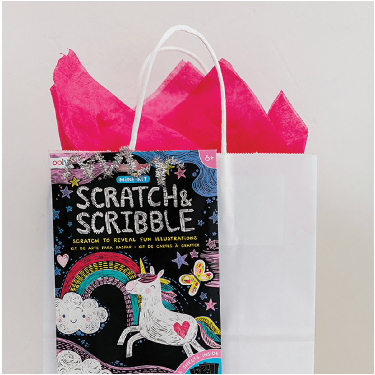 Lamas, licornes, flamants roses et paresseux se retrouvent dans un adorable kit de scratch art. Comprend 4 cartes illustrées et 2 cartes à créer soi-même, ainsi qu'un stylet en bois très pratique pour s'amuser avec le scratch art! Chaque kit d'activités contient tout le nécessaire pour créer des œuvres d'art.
