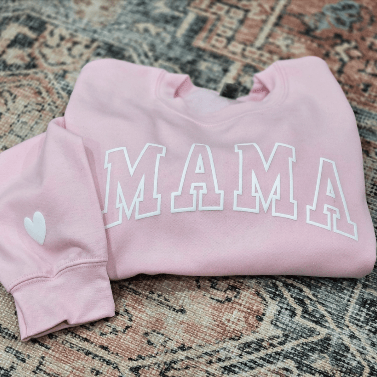 Crewneck manches longues rose doux avec sérigraphie 3D (puff)