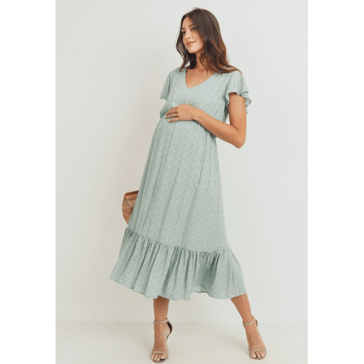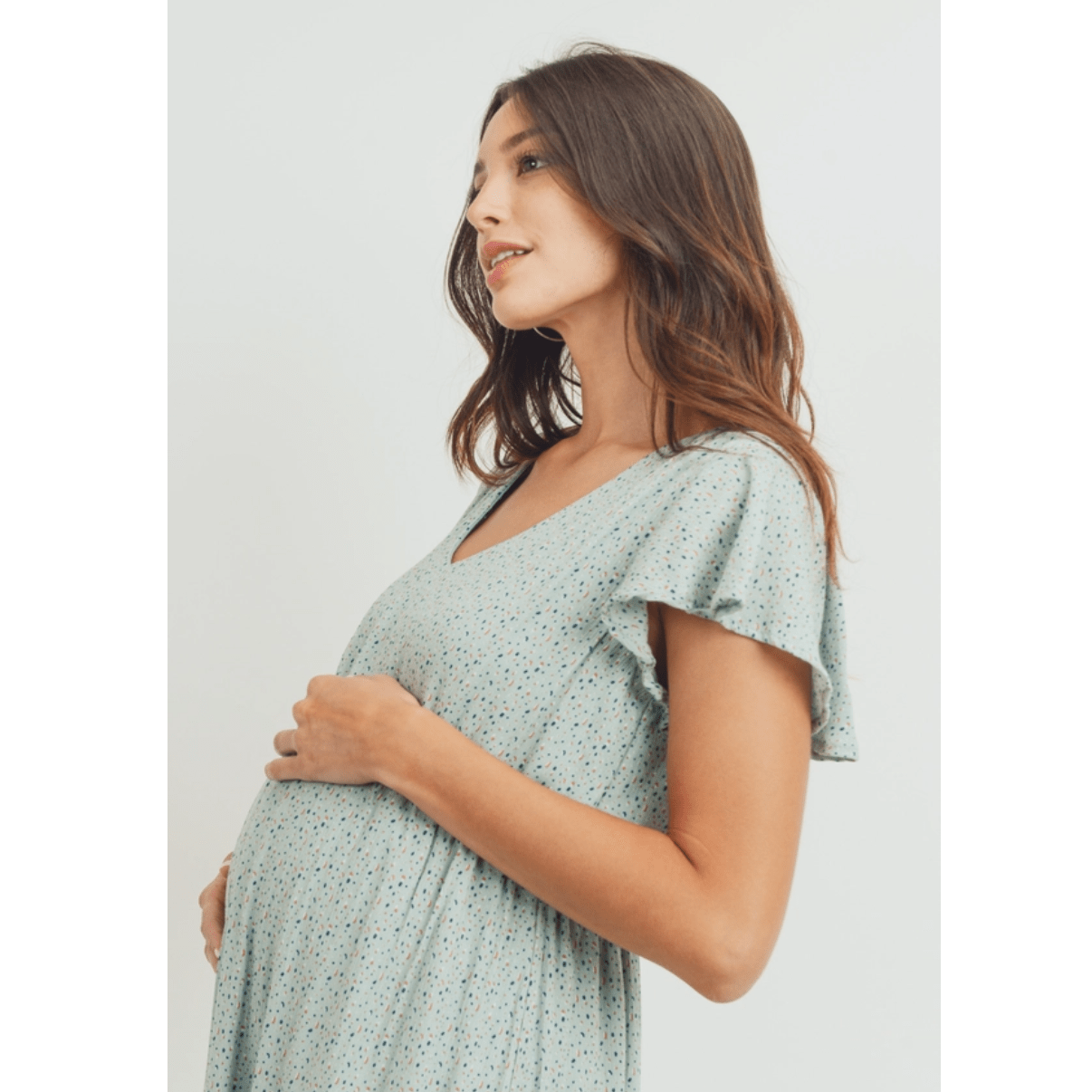 Robe midi de maternité avec volant au bas, manches courtes et col en V