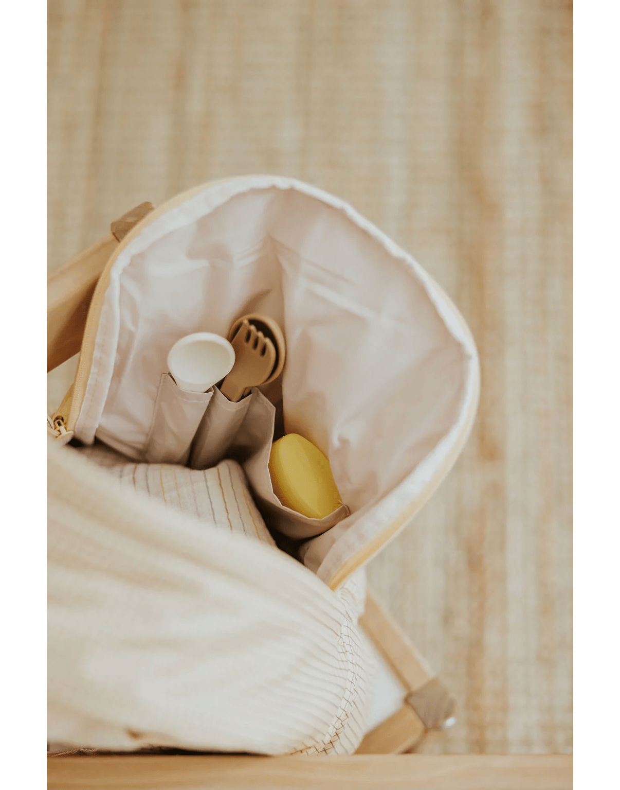 Comprend plusieurs pochettes, dont une parfaitement adaptée à nos petites bouteilles thermos