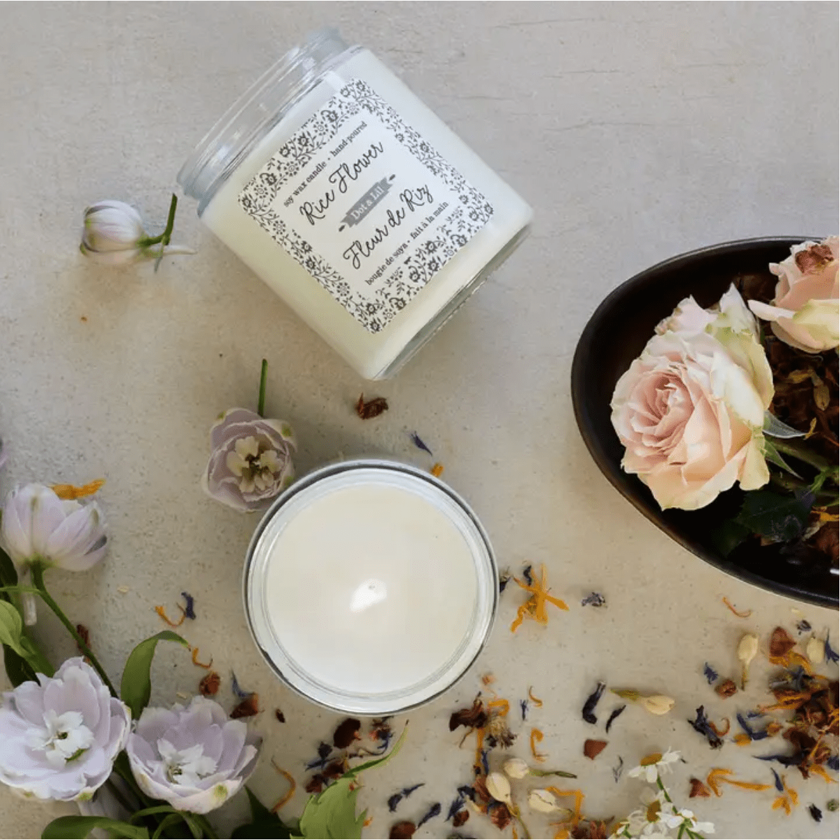 Les bougies finement coulées à la main de Dot & Lil sont fabriquées à partir d'un mélange de cire de soya et d'huiles végétales 100% pures, avec une mèche en coton. Chaque bougie est coulée à la main dans un pot en verre avec un couvercle en métal blanc.