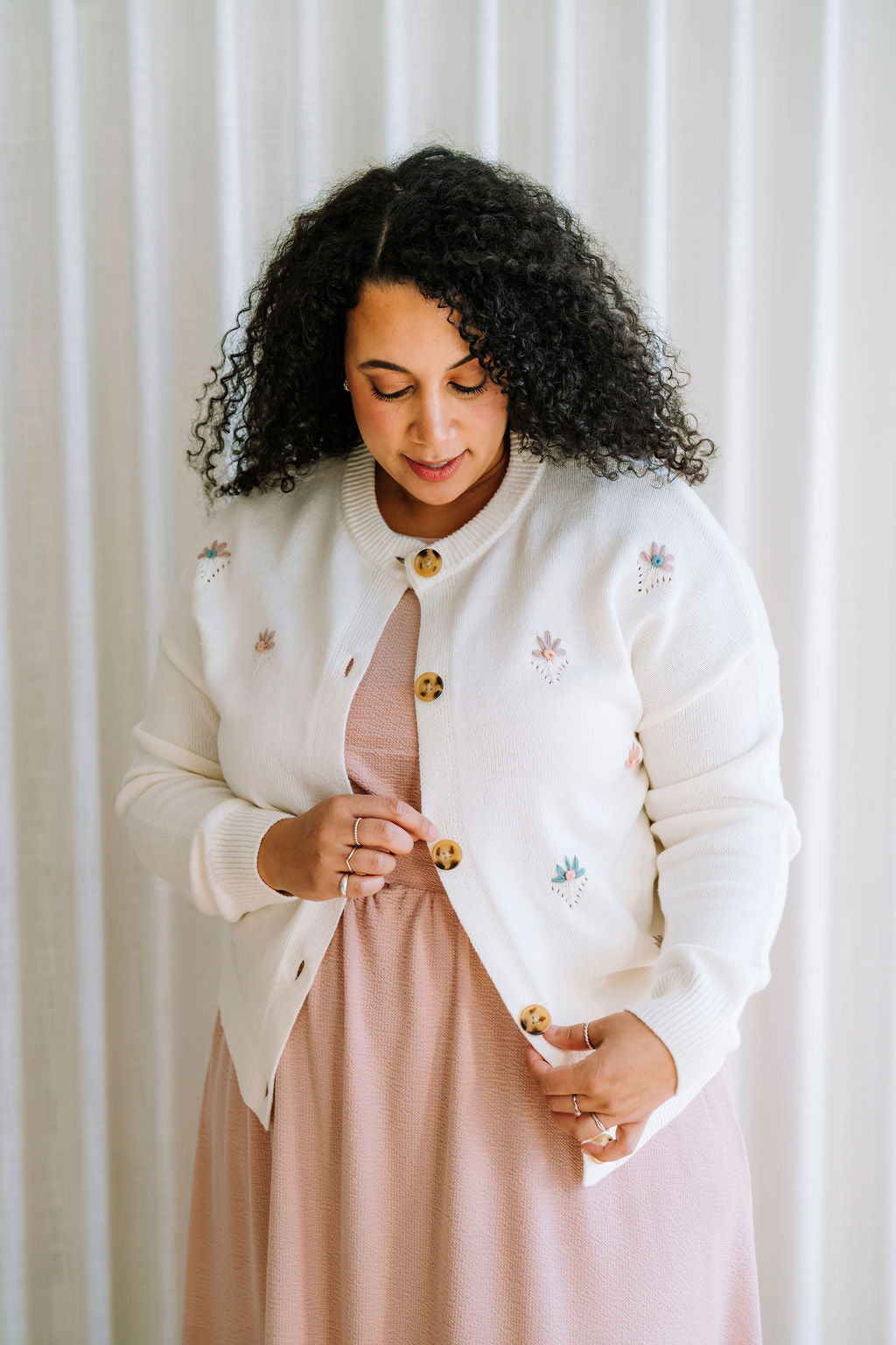 Le cardigan Martine à col rond séduit par sa broderie florale classique. Sa coupe intemporelle et son style élégant en font une pièce facile à porter au quotidien ou pour une touche raffinée à vos tenues.