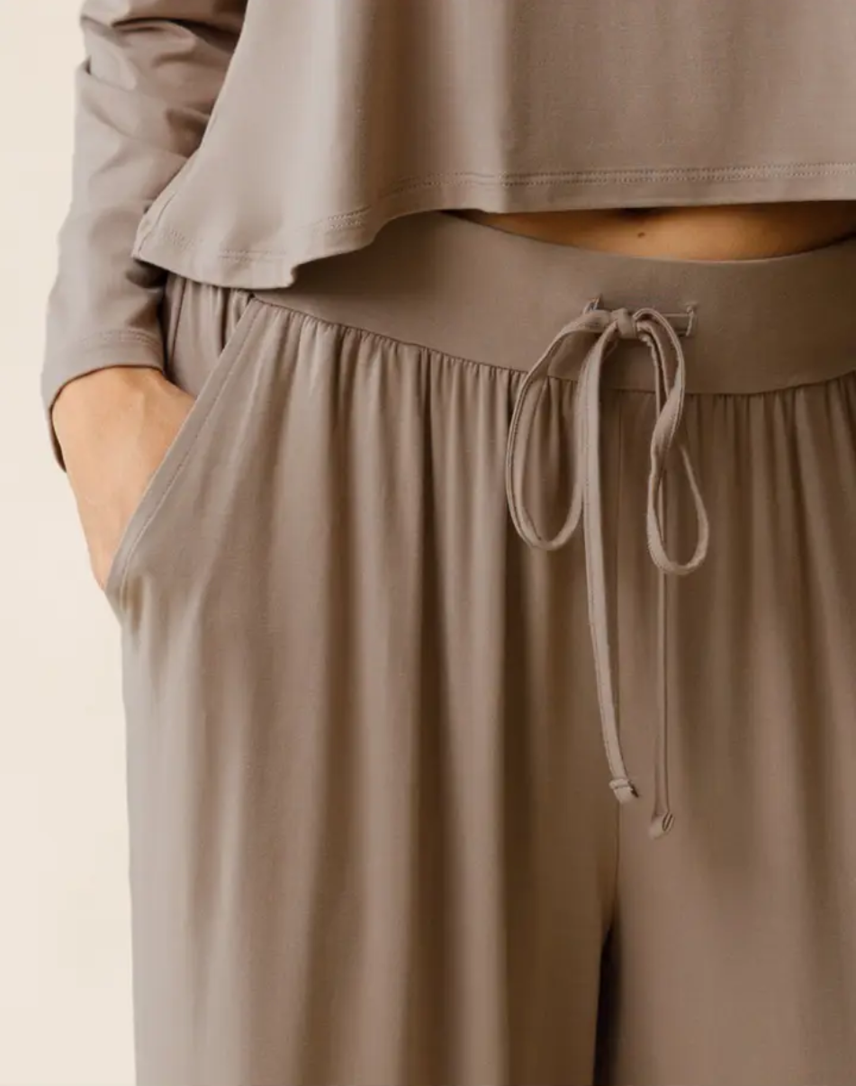 Découvrez le pantalon de détente idéal en toutes circonstances. Conçu pour un confort optimal après l'accouchement et tout aussi adorable avec un joli ventre arrondi. Le pantalon Aria est doté d'une taille ajustable par cordon pour un confort absolu, que vous soyez en train de courir après votre tout-petit ou de câliner votre nouveau-né.