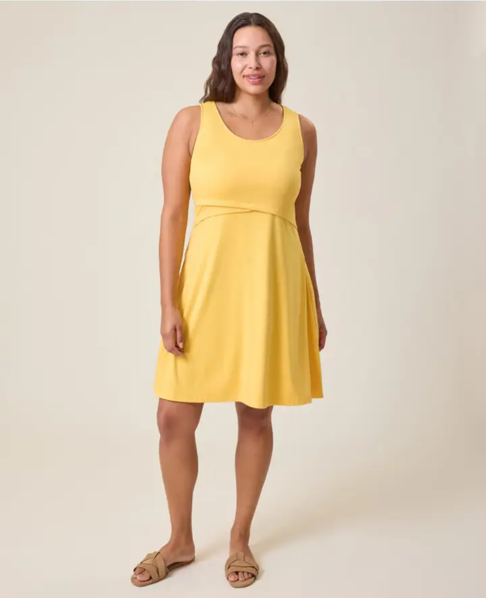 Confectionnée en jersey léger et respirant, et entièrement doublée, c'est la robe d'allaitement décontractée dont vous rêviez : mignonne et confortable.