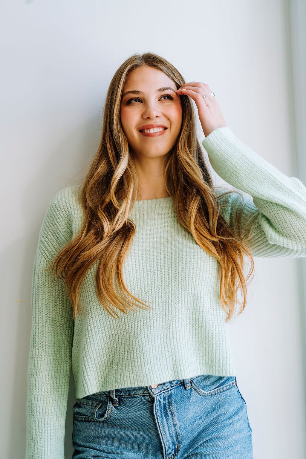 Le tricot en laine Émily, plus court et confectionné dans une maille plus fine, est parfait pour le printemps. Facile à superposer, il complète aussi bien un look décontracté qu’une tenue plus soignée.