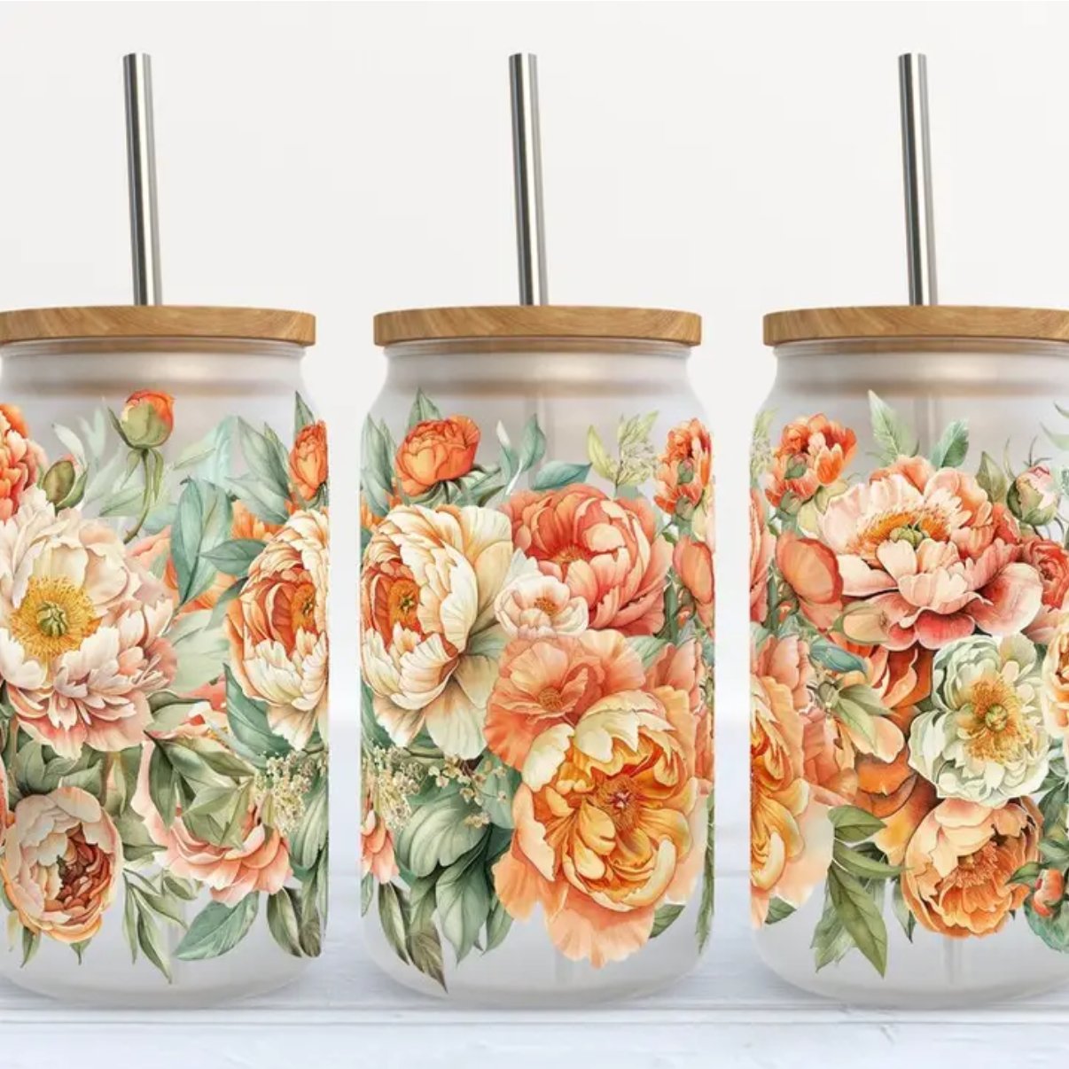 Verre 16oz Fleurs pêche